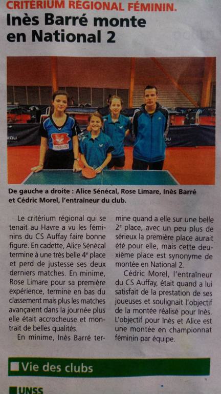 Lors du critérium régional féminin , Alice finit 4 em , Ines se classe 2 em et Rose poursuit son expérience .