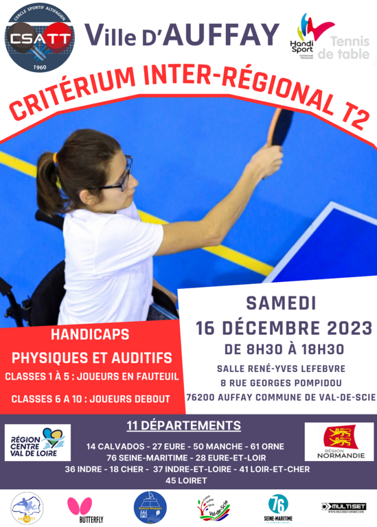 Le CSATT organise le samedi 16/12/2023 sa première compétition Handisport. Il s'agit du second tour du critérium inrer-régional !